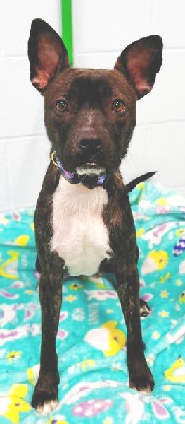 Notes: Demi is a one year old Pit/Boston Terrier mix (our best guess) who was surrendered because she just is not suited for apartment living. She is only 27 pounds, but is full of life and full of energy. Demi is good with dogs, lived with cats and is great with small children. She is partially housebroke. Demi is NOT a fan of a crate. She had to be given up due to barking complaints. She seems like she would be a great couch cuddler.